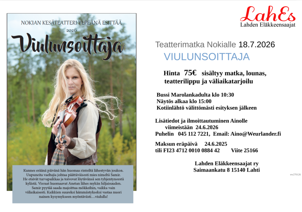 Nokian kesäteatteriin la 18. heinäkuuta 2026